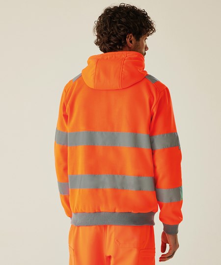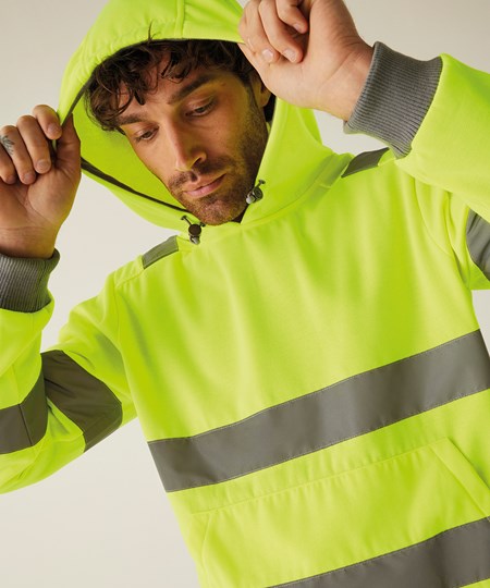The Hi-vis Pro contract hoodie, from Regatta Professional, is certified for workplace safety and built for all-day comfort. It’s made with brushed fleece and features an adjustable hood, ribbed trims and a front kangaroo pocket to keep you warm and ready on the job.