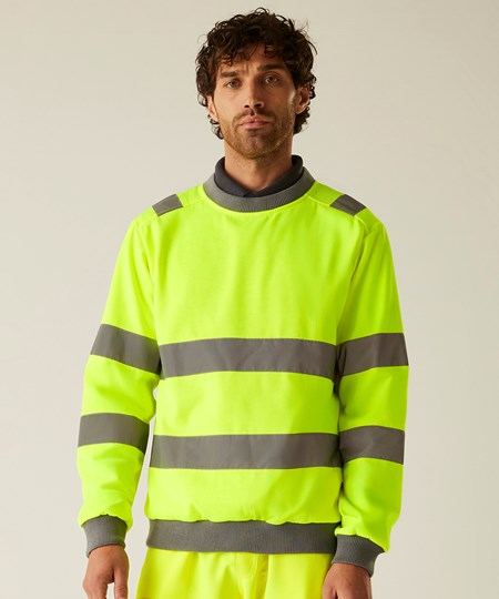 The Hi-vis Pro contract crew neck sweatshirt, from Regatta Professional, delivers comfort, visibility and durability on the job. It’s made from brushed polyester fleece and features a classic crew neck and ribbed trims. Certified for safety.