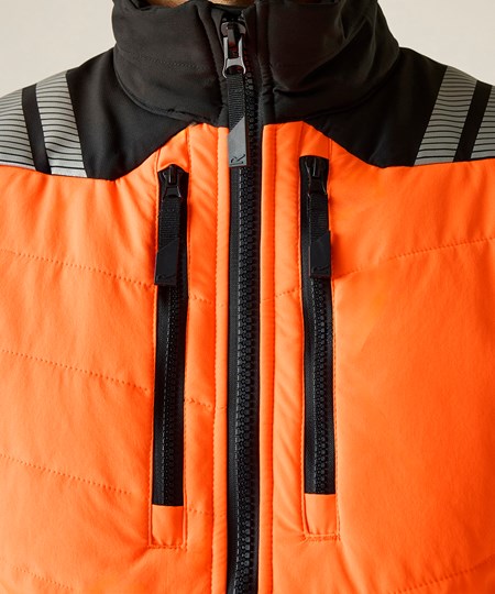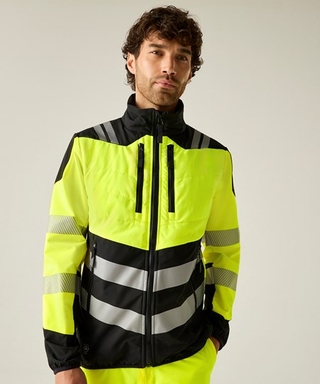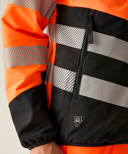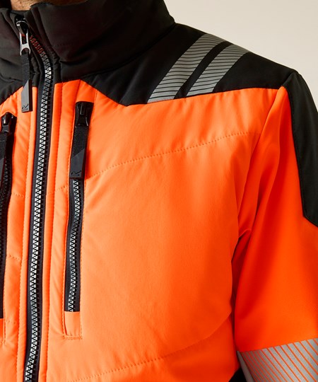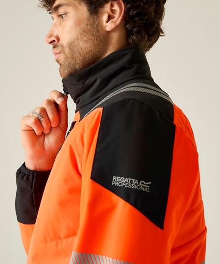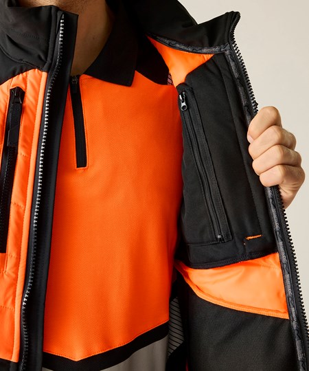 The Hi-vis X-pro hybrid work jacket, from Regatta Professional, delivers certified Class 2 protection with a comfort-focused design. Featuring four-way stretch fabric, recycled Warmloft insulation and softshell panels, it ensures flexibility and warmth. Angled chevrons and multiple zipped pockets offer enhanced visibility and functionality on the job.