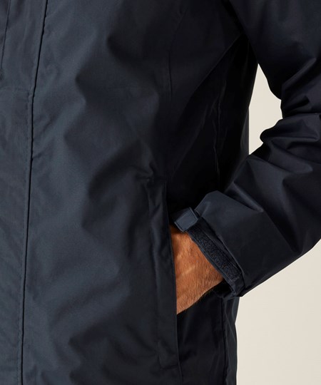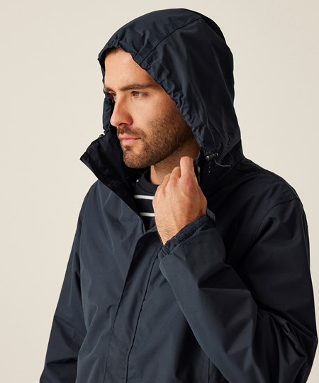 Stay warm and dry in this men's waterproof jacket. The jacket is finished with a durable protective coating to help shield from wind and rain. It's also lined with a polyester mesh for added comfort. The jacket is made from a peached polyester fabric for a fashionable design difference. An internal pocket with earphone cord access enables you to listen to your favourite tunes with ease.