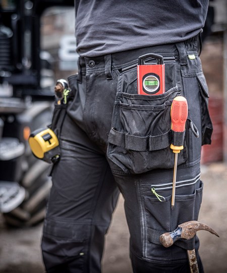 The Infiltrate stretch trousers from Regatta Professional provide the perfect legwear for when you're hard at work. Featuring stretch fabric, the men's waterproof work trousers will move with you. They come with a water-repellent coating to prevent light rainfall and splashes from getting through. The cargo work trousers are finished with detachable holsters and multiple pockets.