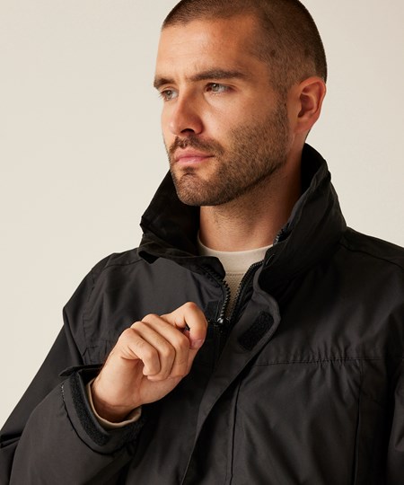 Keep rain at bay with the Vertex III. The men's coat is made with a waterproof, breathable and windproof fabric, keeping you dry and comfortable outdoors. A studded double stormflap provides extra protection. The coated polyester gives this waterproof jacket a fashionable feature.