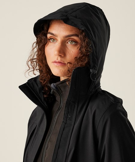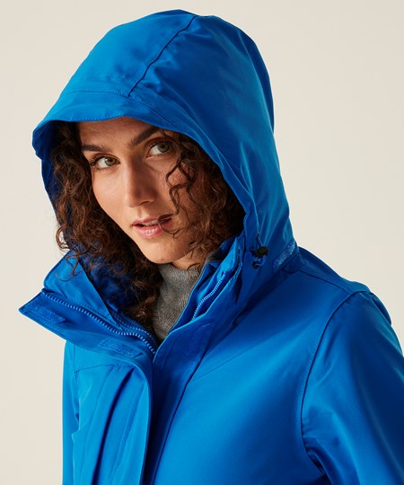 When you need the warmth of a compact softshell and the protection of a big winter jacket, opt for the Kingsley 3-in-1 jacket. The women's winter jacket provides waterproof and windproof protection and comes with a part mesh taffeta lining. When the rain disappears into the clouds, take off the waterproof outer-layer to reveal a slender softshell. The concealed hood and adjustable cuffs keeps rain at bay and prevents wind from getting in.