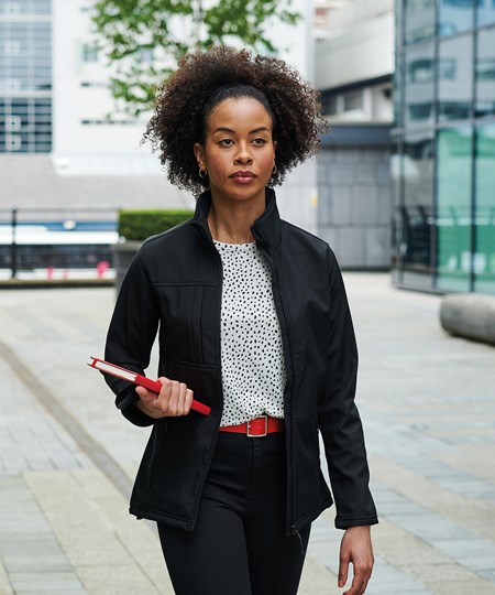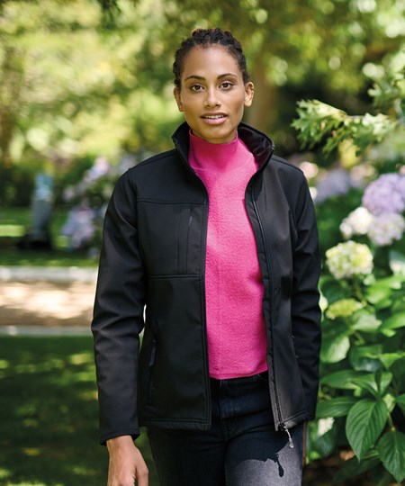 The Octagon softshell is smart, stylish and compact. The warm-backed softshell comes with a natural stretch for agility and a 3-layer membrane for true breathability. The waterproof and windproof finish prepares you for adverse weather and the 300gsm weight gives a secure feel. Two zipped pockets provide the perfect practicality. The women's softshell can be personalised via embroidery, vinyl, screen printing or transfer.