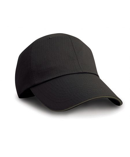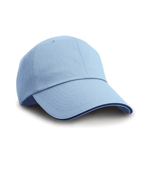 Stylish herringbone weave, low profile cap, great colour range with contrasting colour sandwich peak, Fabric size adjuster with antique brass buckle.
