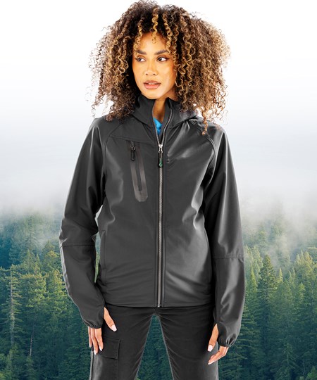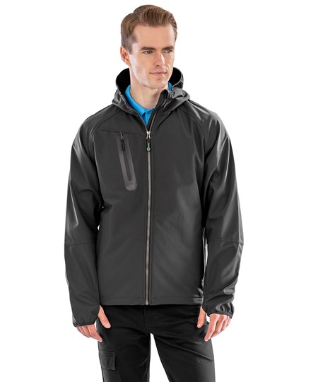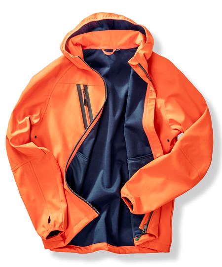 Amazing, soft-feel, hooded unisex softshell jacket with appealing lightweight drape. Ideal for printing.