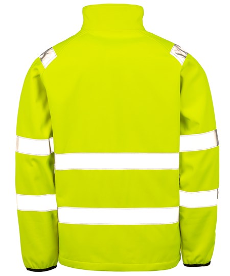 An ultra-comfortable, highly visible, recycled, printable safety softshell with sewn-on arm, shoulder and body bands. UKCA, EN ISO 20471: 2013+A1:2016 Class 2, RIS-3279-TOM Issue 2: Class 2 (orange).