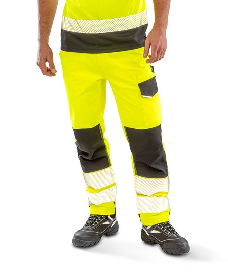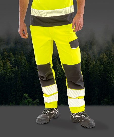 Supermely comfortable, a smart, tailored, highly visible safety-at-work trouser with a handsome, slim silhouette and multiple pockets. Ideal for durability and all-day wear.