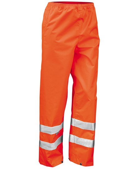 These generously sized Hi-Viz over trousers offer waterproof and wind proof protection whilst adding to your overall visibility. With taped seams, elasticated waist and stud closing ankle adjusters they are the perfect partner to your chosen RESULT Hi-Viz jackets and vests.