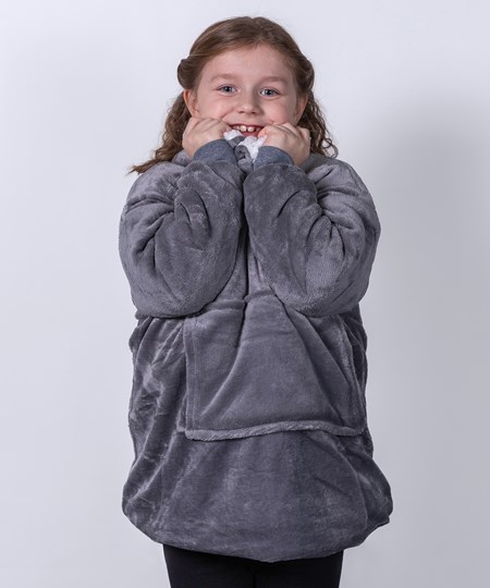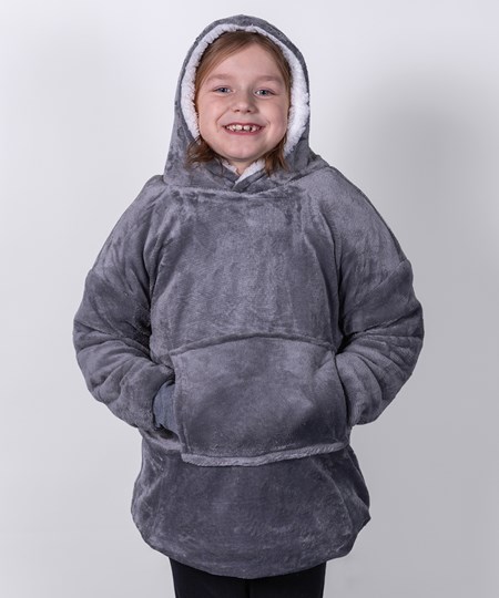 Super-soft microfleece hoodie with snuggly warm sherpa lining. Oversized – one size fits most. Large pocket keeps your hands warm. Reversible – choose your favourite way.