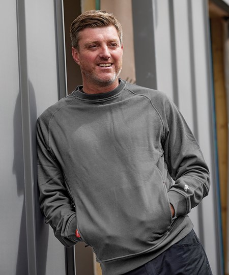 Zipped pockets for secure storage. Raglan sleeve design. Features ribbed hem and cuffs. Naturally breathable and sustainably-sourced cotton fabric.