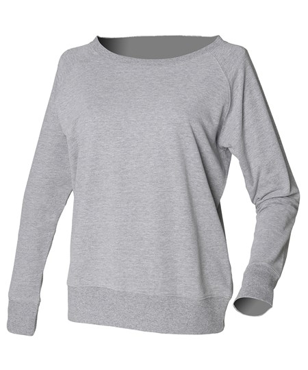 Layer up, cool down. This sweat has a relaxed fit and drape with wide neckline and raglan sleeves for comfortable lounging. Ribbed cuffs, hem and neckline with twin-needle stitching ensures a premium finish. Tear-out label for easy rebranding.