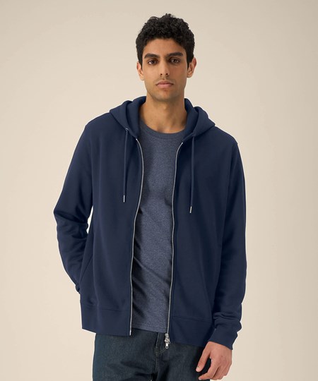 The Astor is a unisex zip hoodie made from a soft and breathable cotton-TENCEL™ modal blend, offering a premium hand feel and fluid drape. Designed for comfort and modern style, it features a double-lined self-fabric hood, matching round drawcords with metal tipping and metal eyelets for a refined finish. The two-way metal zip adds versatility, while welt front pockets, ribbed cuffs and hem, plus a clean back neck, tape elevate the fit and feel. Ideal for lifestyle or trend-led collections, this hoodie provides a smooth surface for decoration, combining cosy comfort with standout design and functionality.