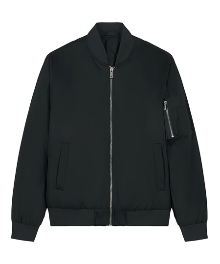 Premium unisex bomber jacket in 100% recycled polyester. Timeless, versatile style in a medium fit. Improved padding and decoration results. Ideal for music merchandise.