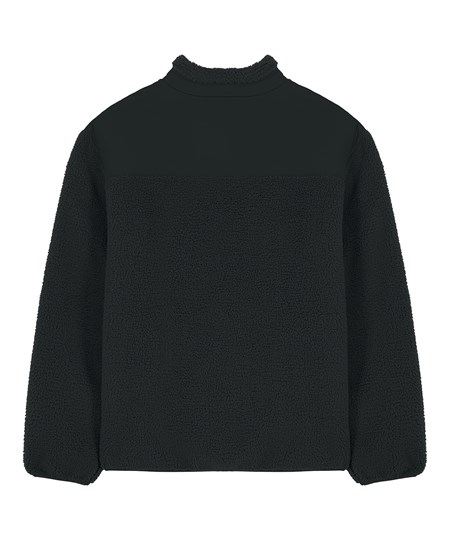 Premium unisex Sherpa jacket in 100% recycled polyester. Relaxed fit, 450gsm. Fully bonded inside fleece layer with an anti-pill finish. Contrast softshell inserts.