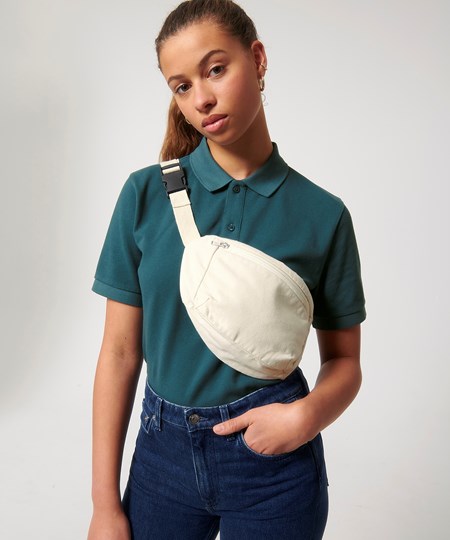Hip bag, made with canvas fabric, fully lined. The bag can be worn around the waist or over the shoulder.