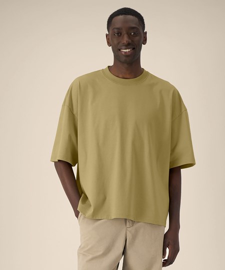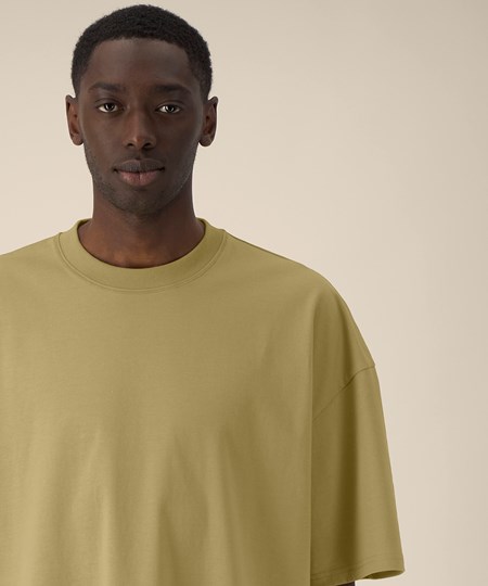 The Hypster is a unisex recycled t-shirt made from a soft recycled cotton blend. With its modern boxy fit, it offers a premium hand feel, smooth surface and relaxed look. Designed for lifestyle collections, music merch and creative branding, it combines comfort and contemporary style. The set-in sleeve, forwarded shoulder seam and 1x1 rib collar create a clean silhouette, while twin-needle topstitching at the sleeves and hem ensures long-lasting structure. Perfect for screen printing or embroidery, this versatile blank brings sustainability and modern appeal together.