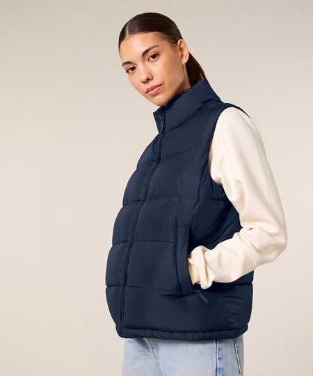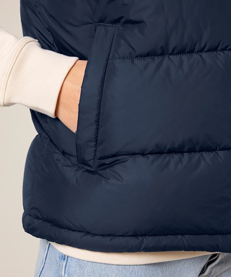 Premium unisex puffer gilet in 100% recycled polyester. High-performance with premium details. Innovative padding for maximum breathability and warmth at -15°C.