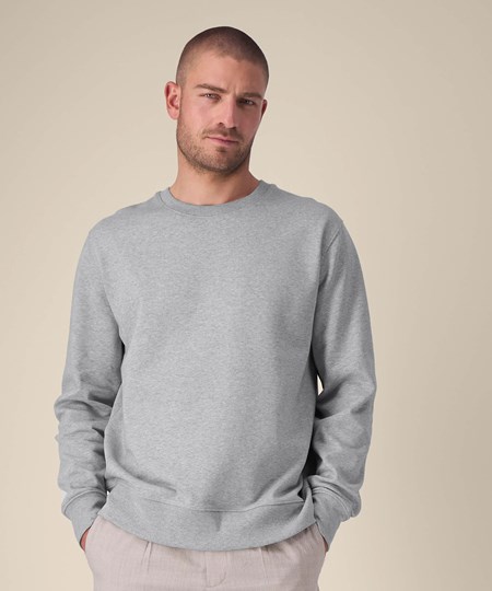 The Thinker is a unisex recycled sweatshirt with a clean medium fit, made from a soft recycled cotton blend. Designed for both comfort and structure, it features set-in sleeves, 1x1 rib at the collar and durable twin-needle topstitching at key seams. The self-fabric back neck tape adds a smooth interior finish, while the surface ensures excellent decoration results. Whether for corporate branding or lifestyle collections, this sustainable crew neck offers a reliable, low-impact blank built for long-term wear and standout customisation.