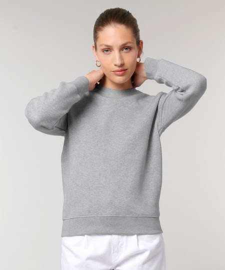 The iconic unisex crew neck sweatshirt crafted in premium brushed 350gsm 85% organic cotton and 15% recycled polyester. Featuring classic proportions and exhibiting distinct brand DNA characteristics. Expect durable twin-needle top stitching at 1x1 ribs and armhole with herringbone neck tape and half-moon detail at back neck.