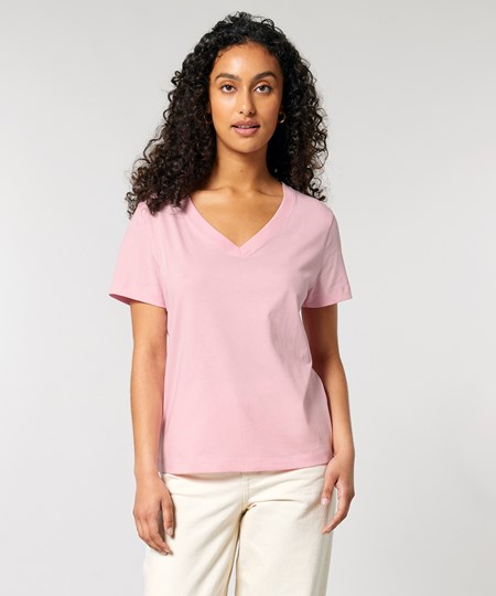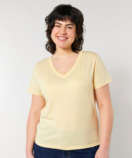 The women’s Stella Isla v-neck t-shirt comes in a weight of 155gsm, in a medium fit. Featuring a wide colour palette to choose from, its 100% organic ringspun combed cotton provides the perfect, smooth printing surface for decoration.