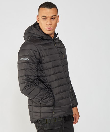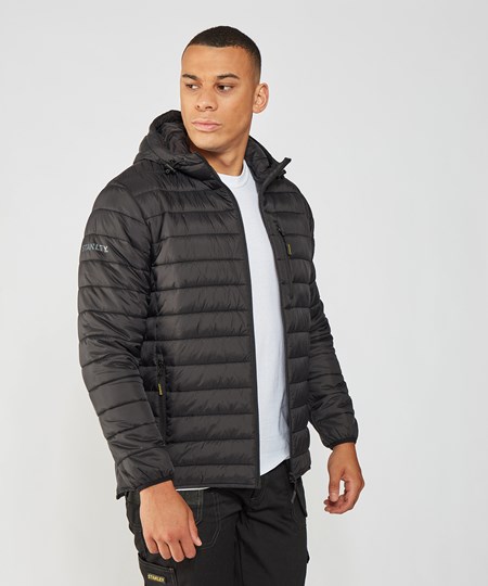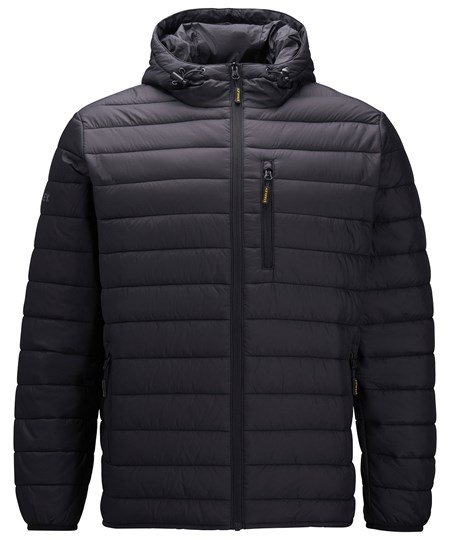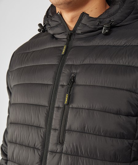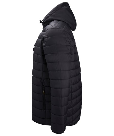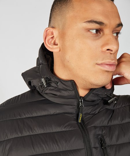This lightweight narrow baffle hooded jacket has a reversed centre zip for a more windproof finish, is water-resistant in light showers, and includes double pockets for storage and a handy chest zipped pocket.