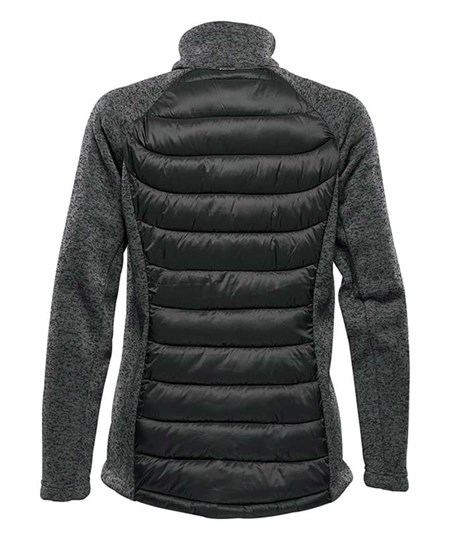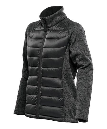 Ultra-lightweight, with maximum thermal efficiency, the Women’s Narvik hybrid jacket isolates and contains heat in damp, cold environments with a lightweight quilted body, bonded knit collar and sleeves. A durable, PFC-free, water-repellent finish on the main body helps to repel water in damp conditions, while the chin saver and adjustable hem with drawcord allow adjustment for maximum comfort during hikes or in outdoor/indoor working environments.