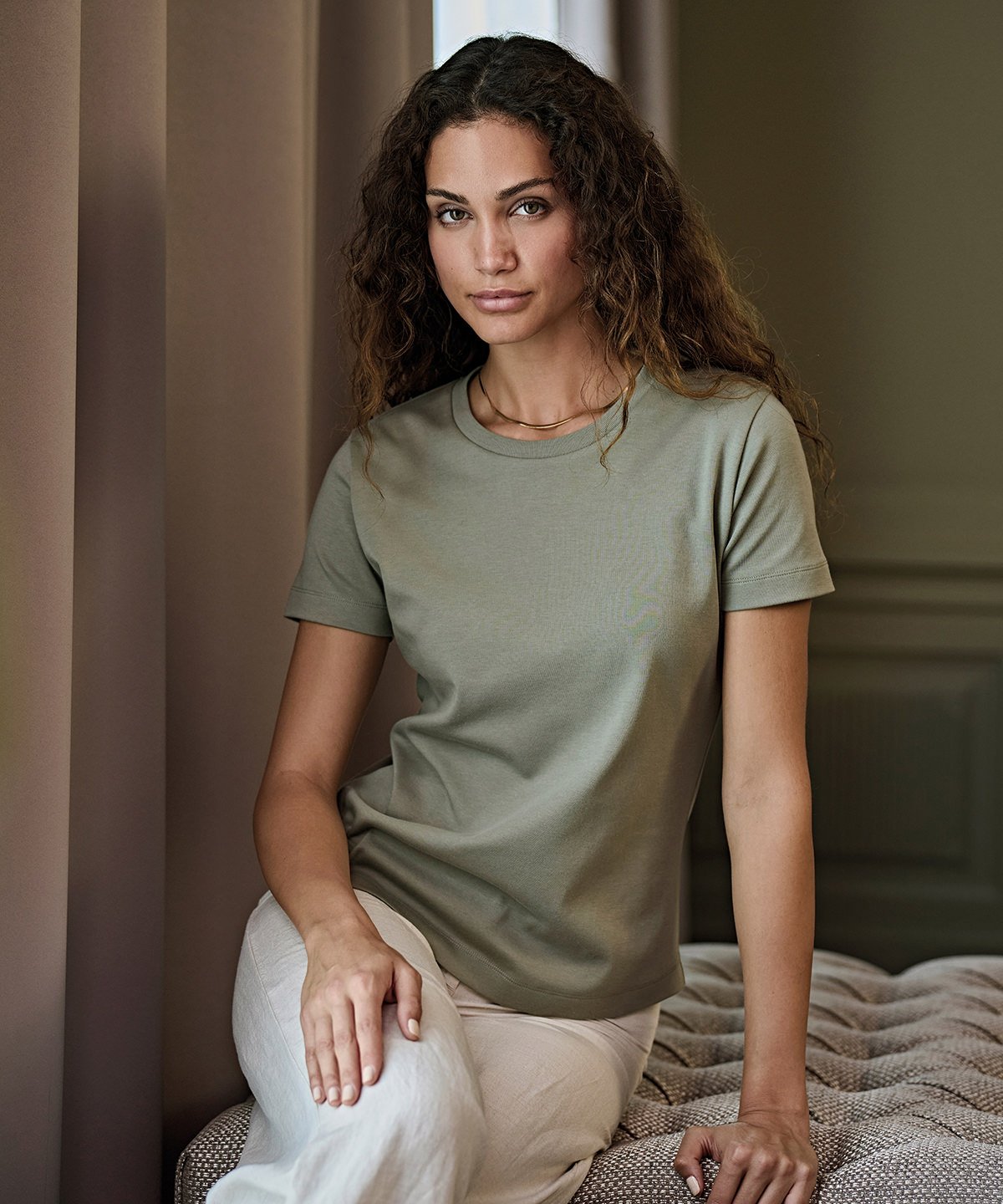 Crafted from 44 singles Pima single Jersey cotton, the Women’s Pima cotton tee represents the pinnacle of premium quality t-shirts. Its tailored fit and minimalistic design make it the ideal choice for corporate settings and casualwear.