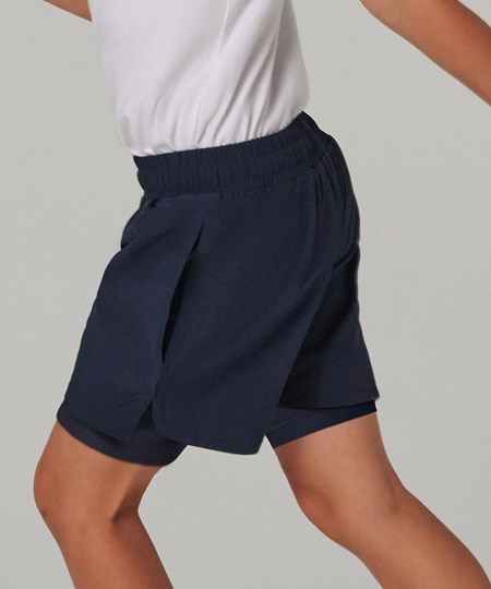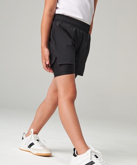 Designed for active kids, these double-layer sports shorts combine freedom of movement with dependable support. The outer short is made from lightweight, four-way stretch microfibre for flexibility and durability, while the built-in interlock undershort provides a secure fit with moisture-wicking technology to keep kids cool and dry. Perfect for school sports, clubs, uniforms, training or casual play. A smart choice for youth-focused collections where comfort, performance and consistency matter.