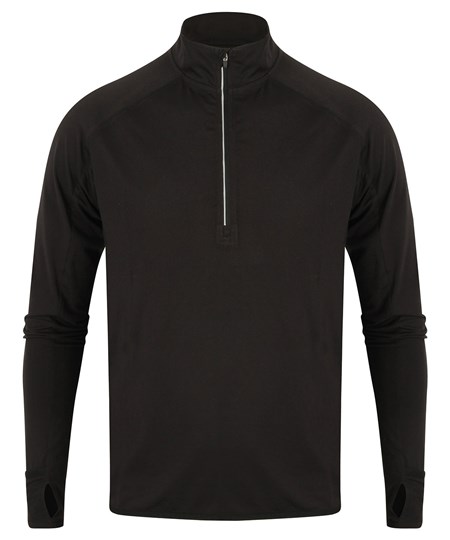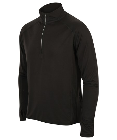 Train smarter in our ultimate 1/4 zip. Reflective zip tape and dot detail at back raglan ensures maximum visibility, while the sports thumbholes and discreet fold over cuffs are perfect for when you hands get chilly. The single Jersey fabric with wicking finish keeps you cool and dry, helping you to perform at your best.