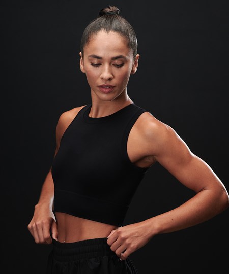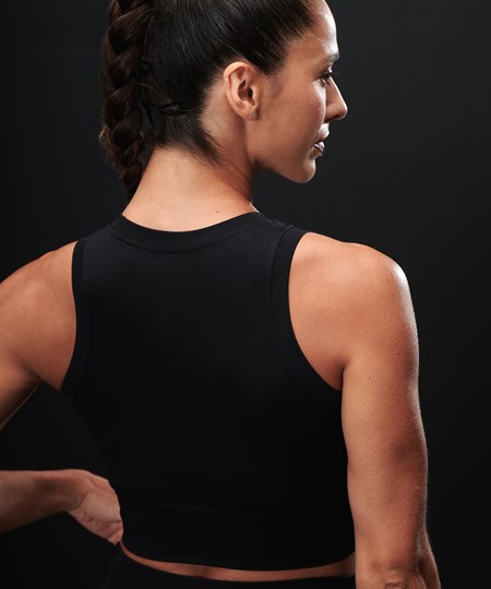 Fashioned in our smooth, seamless fabric, this stylish cropped tank provides light support in a modern and adaptable style. Pair with our perfectly sculpting high-ribbed waistband leggings (TL331) for the complete look.
