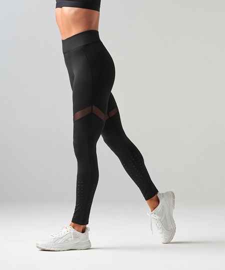 Make a statement with these fashion panelled legging. The on-trend mesh and innovative laser cut panels give superior styling, while the high waistband and opaque fabric make them the perfect squat-proof choice for any workout.