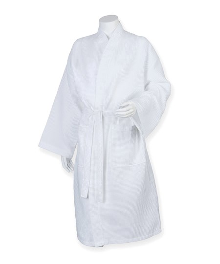Perfect for relaxing in style, the waffle robe is supersoft in traditional styling with a textured waffle finish and deep patch pockets. Featuring kimono sleeves styling with matching tie belt.