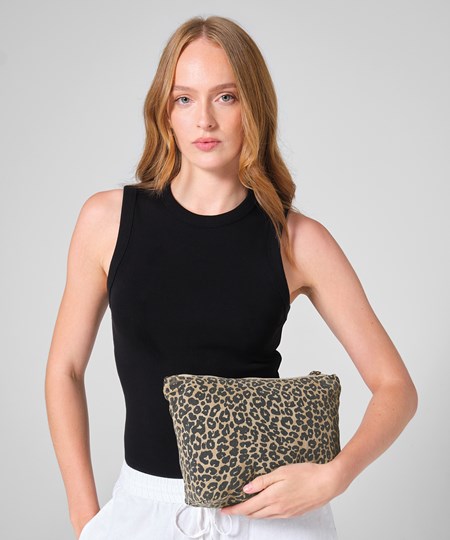 The Leopard print canvas accessory bag offers a simple way to keep essentials organised with ease. Made from recycled cotton and recycled polyester, it combines everyday practicality with a playful, washed leopard print design. Compact and versatile, this bag works just as well for beauty items and travel must-haves as it does for daily organisation.