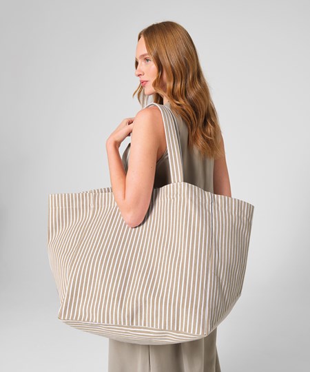 The Oversized beach bag exudes timeless style – ideal for summer escapes and everyday adventures. Made from recycled cotton and polyester, its premium heavyweight fabric is durable, with a soft-touch feel. A yarn-dyed stripe design adds a classic finish, while the extra-large capacity and internal pocket keep essentials organised for holidays, weekends away or relaxed days by the sea.