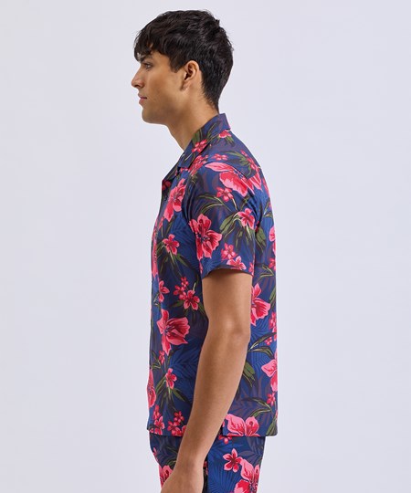 Looking to add some fun to your summer wardrobe? Look no further than Wombat's short-sleeve shirt. Perfect for vacations or just lounging in the sun, this shirt features a relaxed fit, lightweight material, a trendy Cuban collar, and easy button fastening. Wear it on its own for a breezy look, or layer it up with a classic tank top and matching Wombat swim shorts for a vibrant and coordinated outfit.